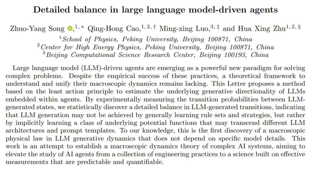 论文标题:Detailed balance in large language model-driven agents