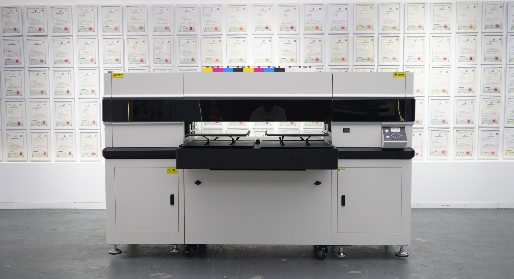 河南印都旗下奥德利品牌新推出的UV-DTG,双工位,台板大小可自由调换,且可以进行满幅打印,打印大版面T恤、牛仔裤等不在话下,白布不挑布料。