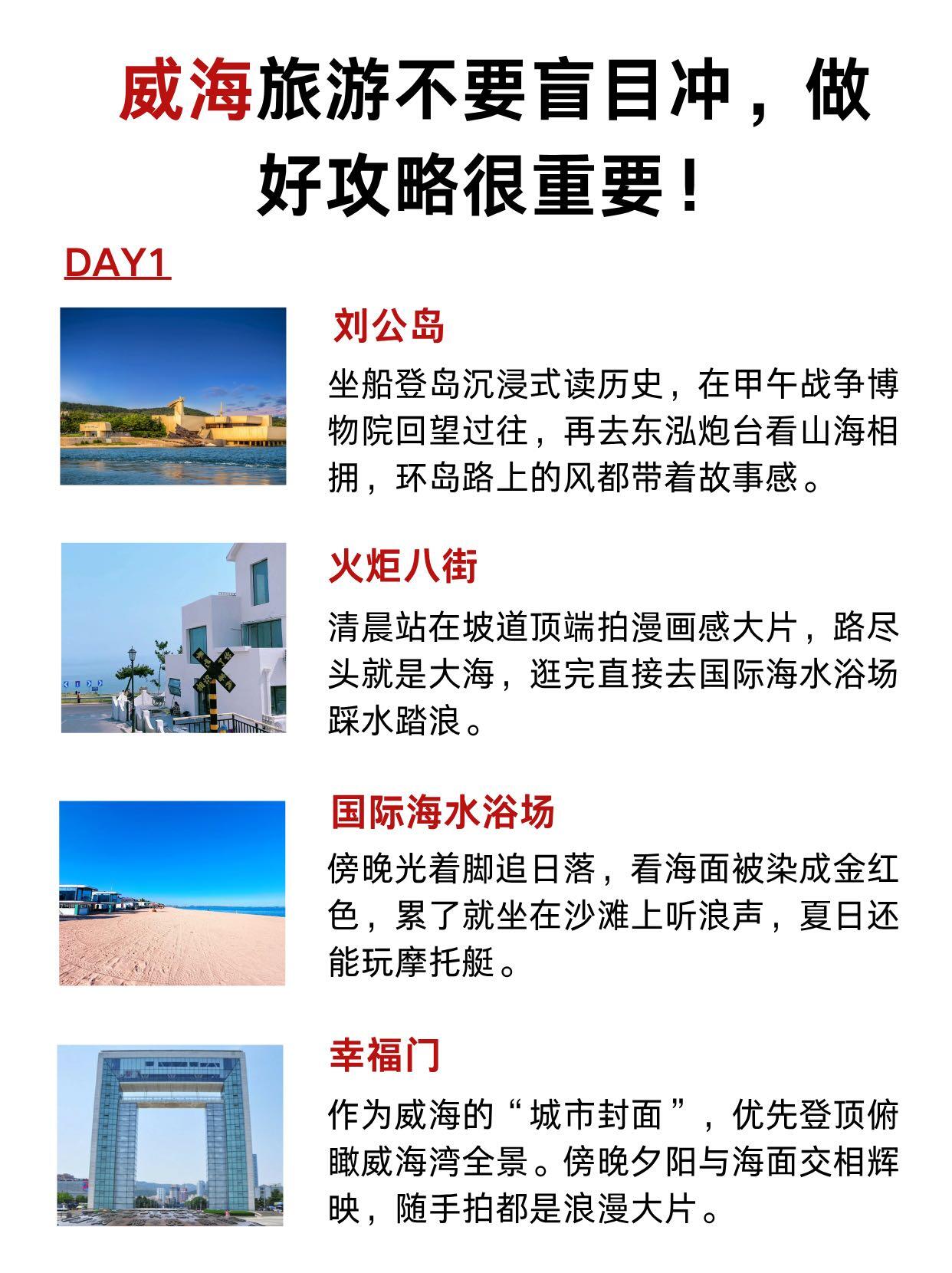 想去威海的姐妹看过来!做好攻略很重要,没提前规划,可能错过很多好玩的地方。这份攻略帮你省时、抓重点,从景点到美食,每一步都不浪费,让你轻松拥抱威海的蓝与浪漫。速速收藏备用!