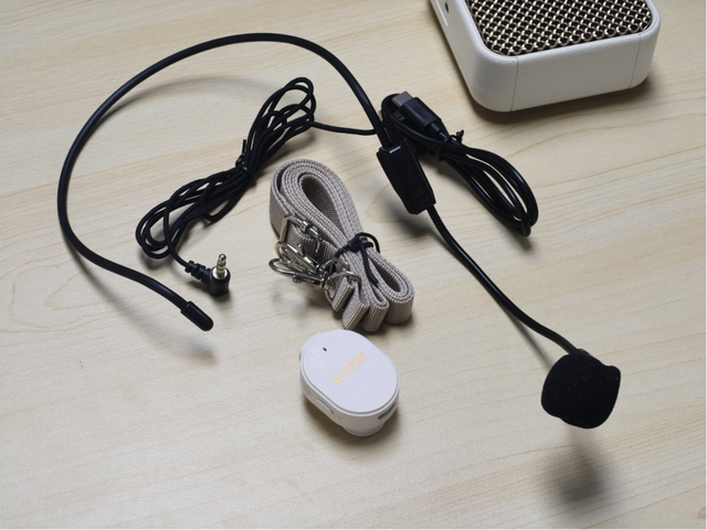 相较于以前我姐用的只能插一个有线麦克风,在挥舞教鞭的时候还容易缠绕,采用20g重量的磁吸领夹麦就方便很多了。但是在无线麦没有电的时候依旧可以选择使用耳挂式的有线麦克风。