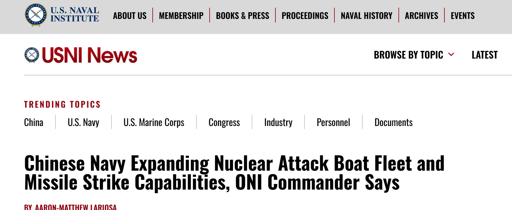 美国海军学院新闻对此的报道