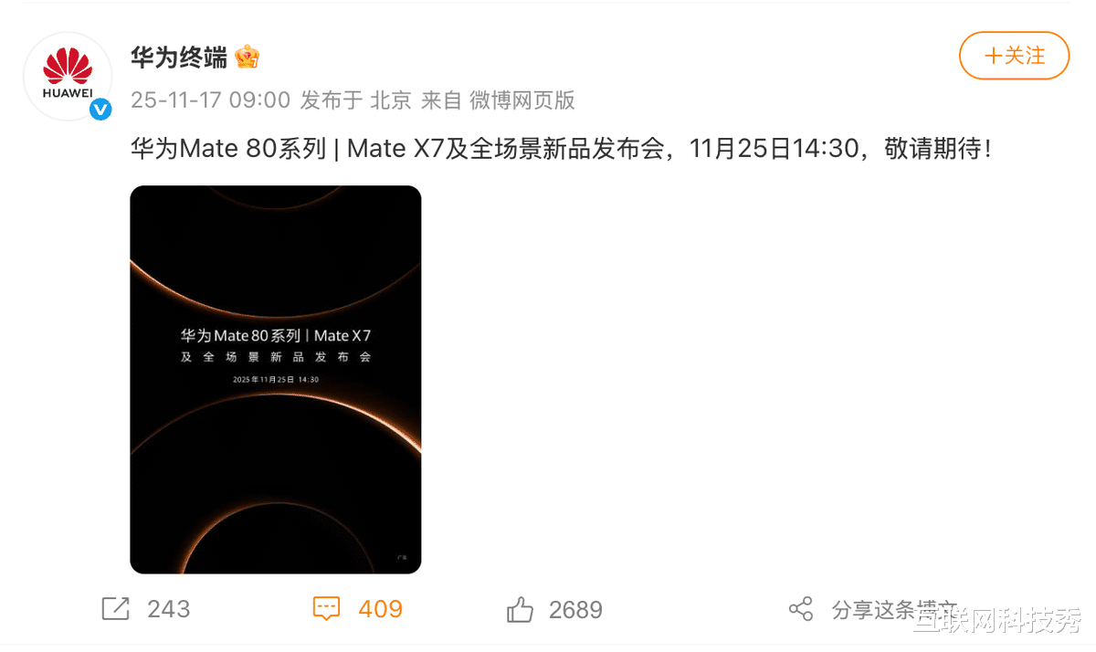 11月17日,华为Mate 80系列 | Mate X7及全场景新品发布会终于官宣了,也放出了预热海报。圈里都在猜它可能带来的惊喜。有人说会是影像技术的又一次颠覆,也有人说AI功能肯定再跃升。光看爆料哪过瘾?作为一个硬核花粉,我这次不打算隔着屏幕喊加油了,我要去现场!