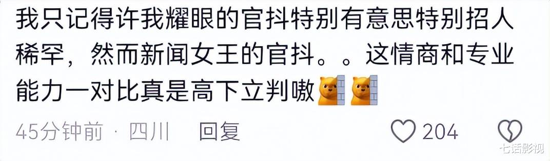 事件起因是《新闻女王》官V下的一条评论,当时有网友在剧情预告下说“《许我耀眼》想要的拍出的感觉”。