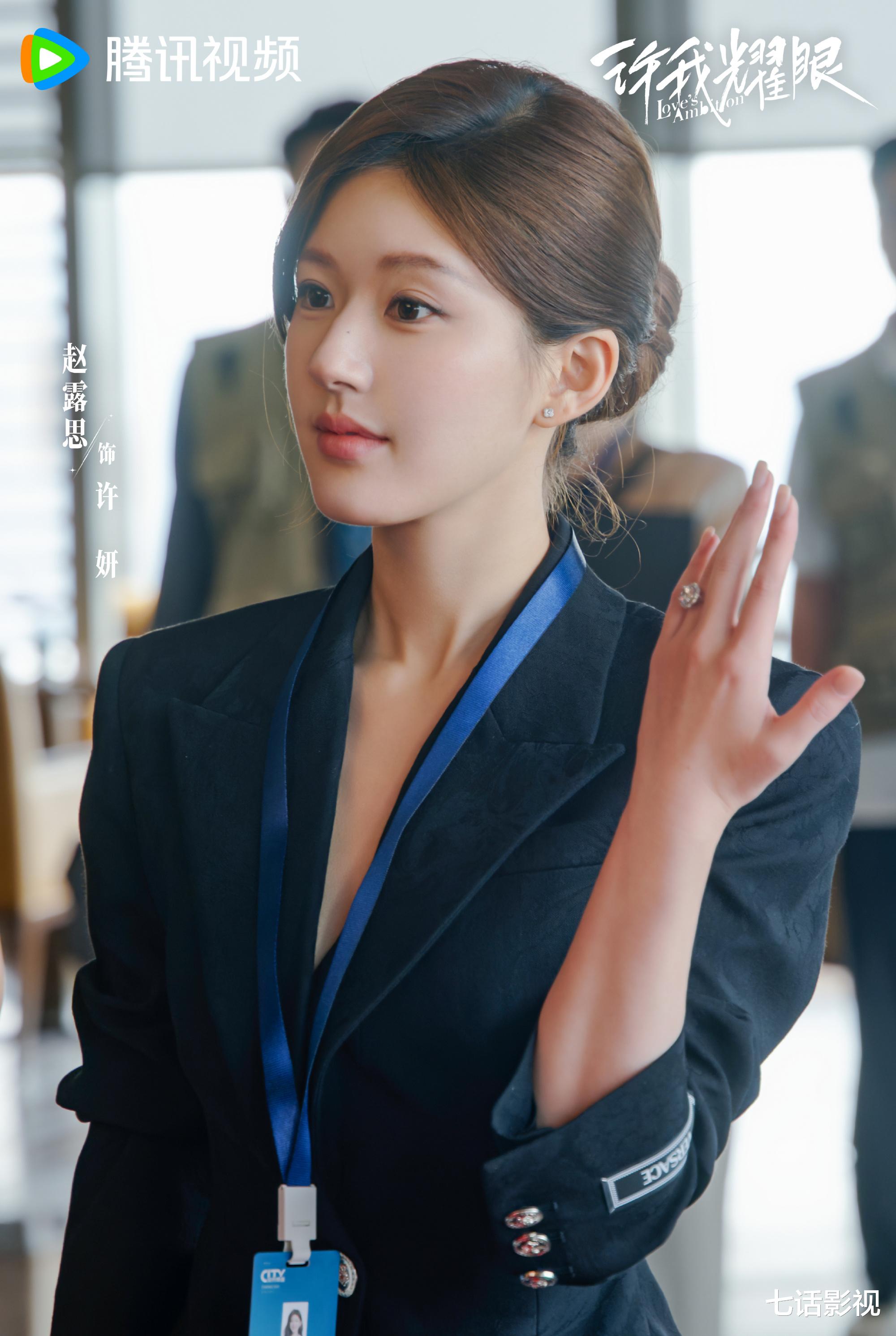 介绍一下,《许我耀眼》是言情剧,但故事涉及新闻行业,赵露思饰演的女主许妍便是一名新闻主持人,剧中有大量主角播报新闻及职场日常画面。