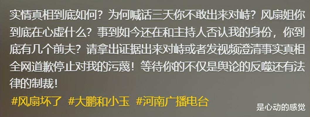 做完了这些回应,风扇姐的前夫也在网上开始公开对峙,但对于这位前夫哥的质问,风扇姐至今仍没有过多的回应。