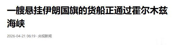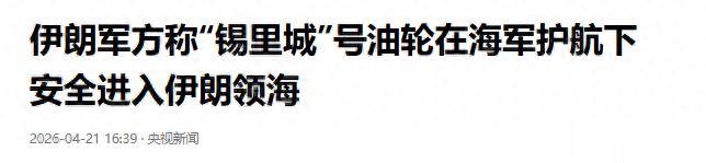 央视新闻报道称,当地时间2026年4月21日,伊朗陆军公共关系办公室发布声明称,伊朗油轮“锡里城”号在伊朗海军的支援下,在20日夜,穿越阿拉伯海后安全进入伊朗领海。伊朗军方表示:“尽管美军方面多次发出警告和威胁,该油轮仍在伊朗海军护航支持下安全完成航行”。在21日凌晨,一艘悬挂伊朗国旗的货船,无视美国军队的封锁,通过霍尔木兹海峡,正驶向印度坎德拉港,去12小时内,有3艘船只通过霍尔木兹海峡。
