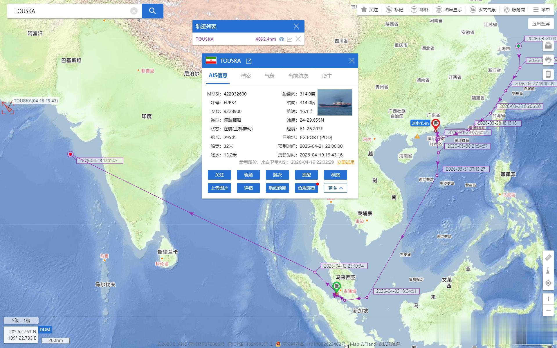 这艘货轮是从上海,珠海出发,前往伊朗的