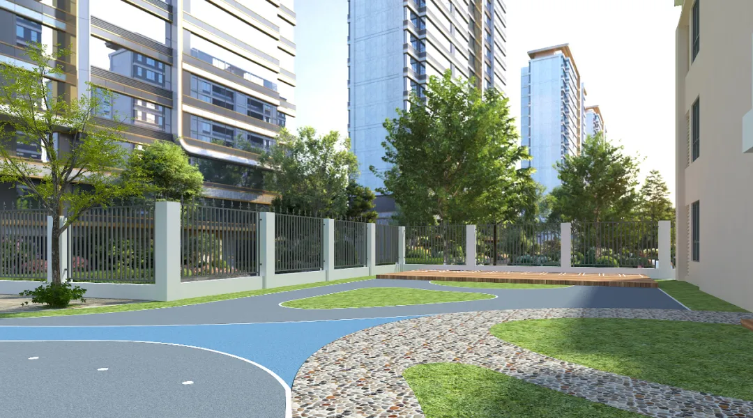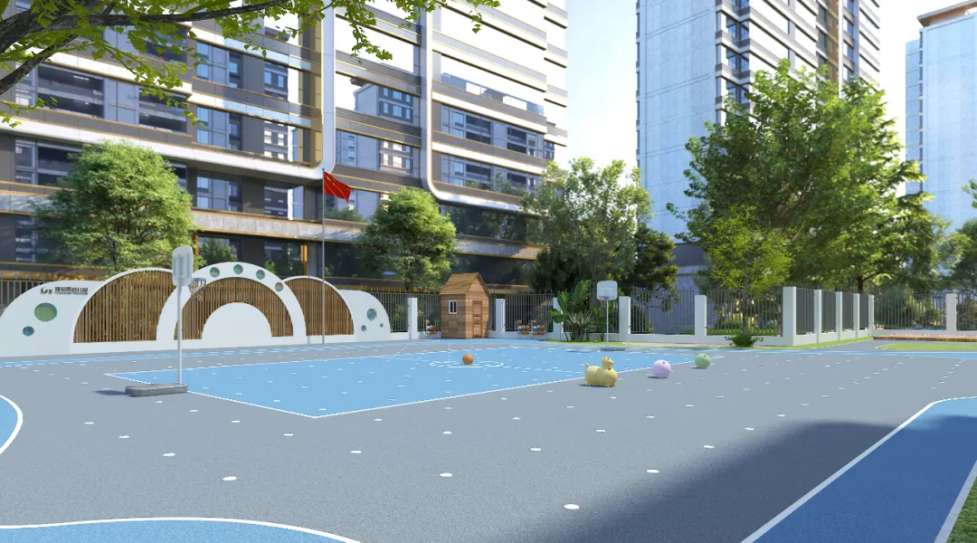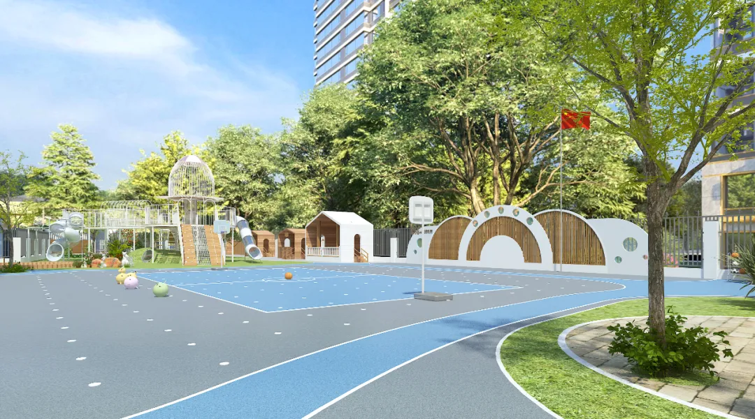 操场的边缘位置还设有跑道区域,引导孩子学习直线奔跑和转弯等运动技巧。种种细节设计让操场成为了帮助孩子们释放活力、健康成长的运动殿堂。