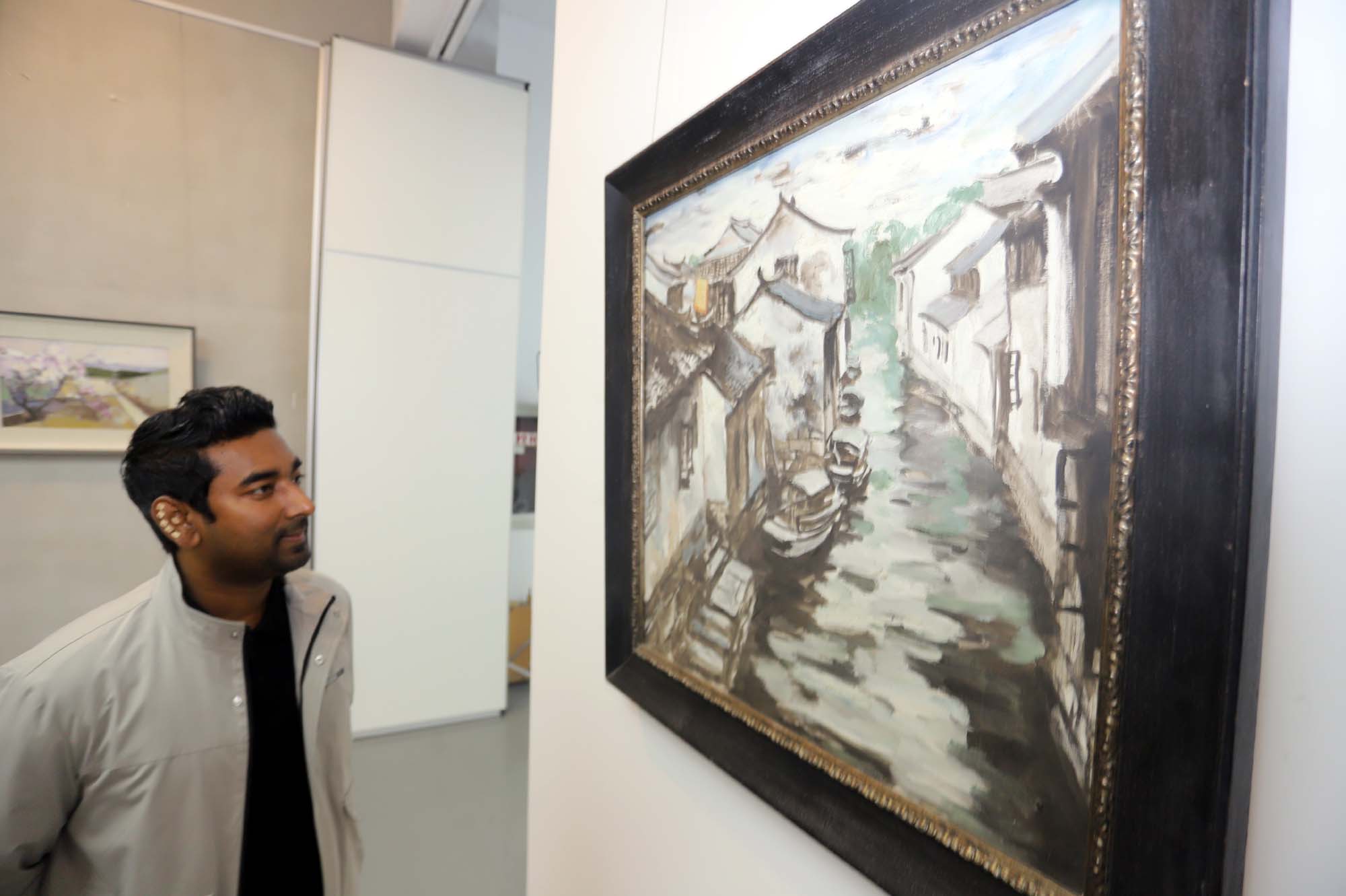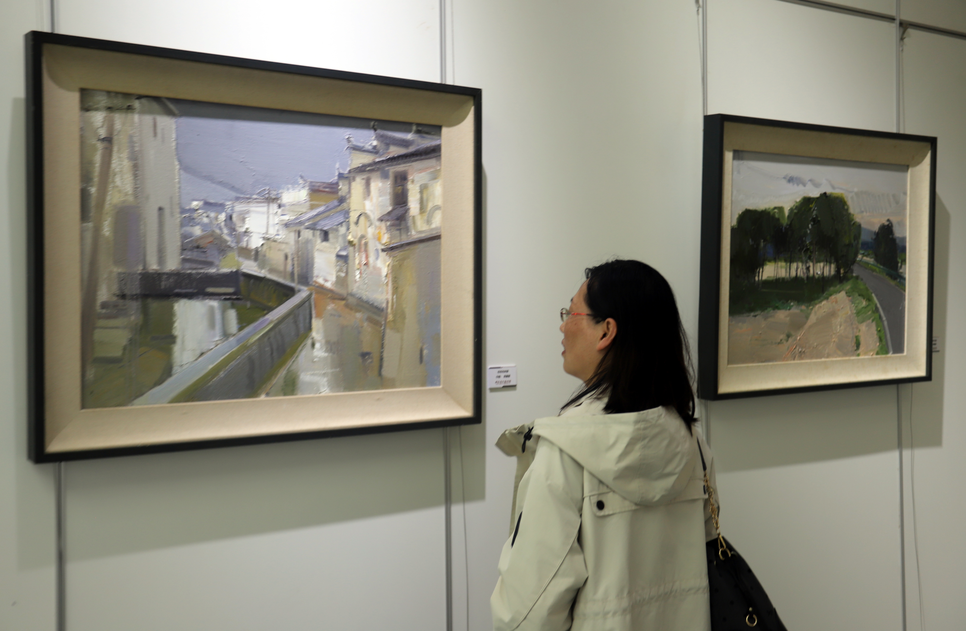 展览现场,20位艺术家精心创作的40件油画精品熠熠生辉,每一幅作品都散发着浓郁的江南文化气息,带领观众领略苏州独特的艺术魅力。参展艺术家涵盖了众多优秀人才,按姓氏首字母排列是:高阿兵、顾玉林、郭宏祥、贺文斌、姜蘭玉、李磊、李献、刘欣、钱兆峰、孙亚文、田文焕、王俐、徐青、张昌硕、张鹏、张文来、张玉赢、张曦、周华明、周建捷。他们以个性化的视觉语言,在画布上探讨着具象与抽象、传统与创新的多元可能,展现出油画艺术在当代文化语境中的蓬勃生命力。