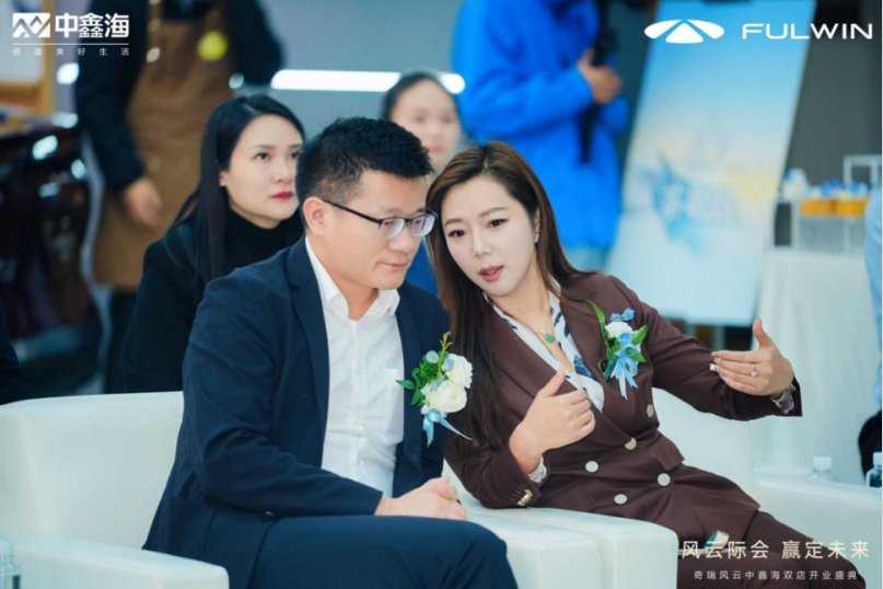 奇瑞风云西南战区总经理易志焰先生、成都中鑫海集团执行董事杨姗女士亲切交谈