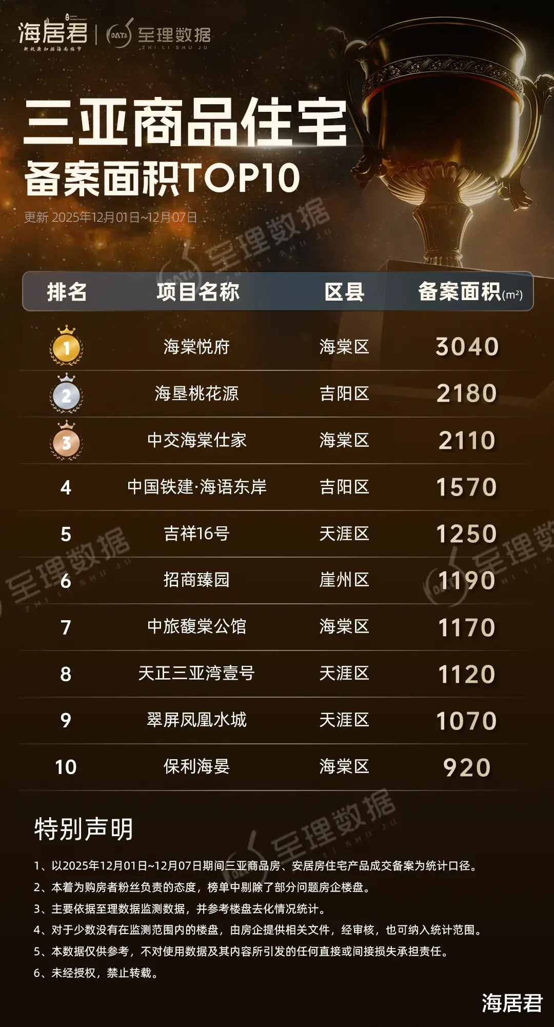 中心城区翠屏凤凰水城、崖州湾科技城招商臻园、海棠湾国家海岸中旅馥棠公馆等市场热盘,均跻身三亚商品房住宅热销榜十强。