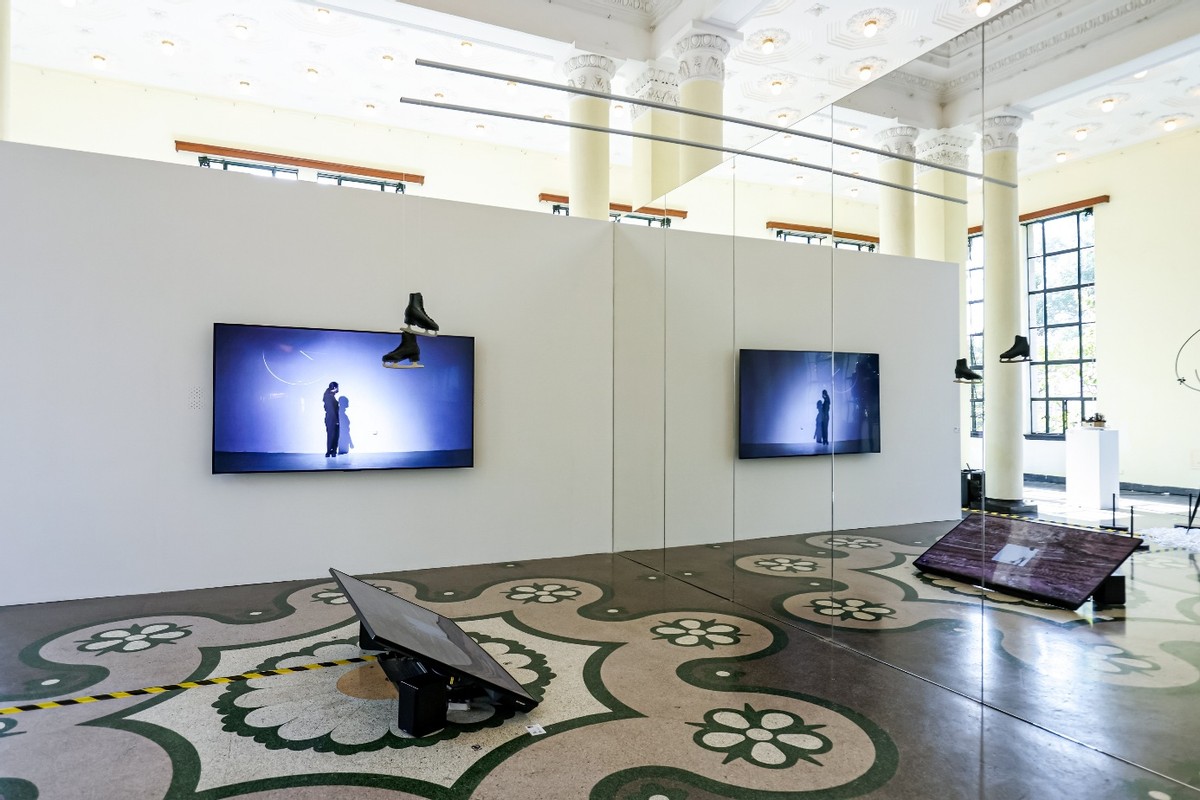 艺术家胡佳艺的作品《冰刀》、《总是来得太迟》以日常为起点,赋予其寓言般的张力,展示一种超越资本逻辑、恢复感知的全新节奏。《虚空的呼唤》系列作品则在时空与物质的循环中,展开对自由意义的深邃追问。艺术家黎佳仪的作品《中场休息》和《蛋》,脱离了人类中心视角,构建出重塑感知的独特叙事,引人驻足凝思。装置艺术家徐戈的《接口》以艺术语言解剖技术理性,真实映照出人被数据异化的生存现实。他的系列作品《永无岛——一块蛋糕计划》以荒诞神话展开,耐心而深入地探讨人类内心世界的虚空和追寻。