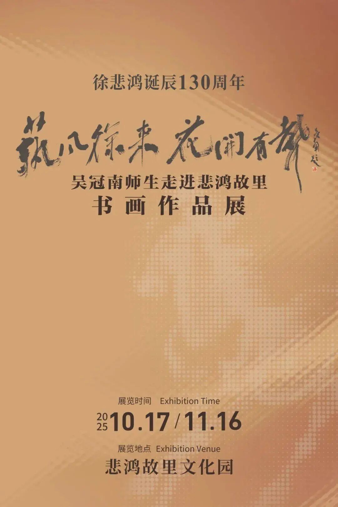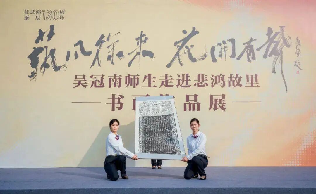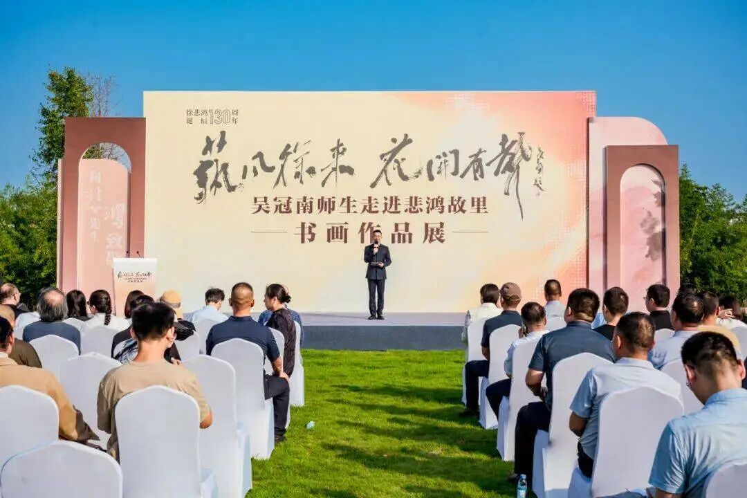 10月17日,“艺风徐来 花开有声——吴冠南师生走进悲鸿故里”书画作品展在屺亭街道悲鸿故里文化园开幕。