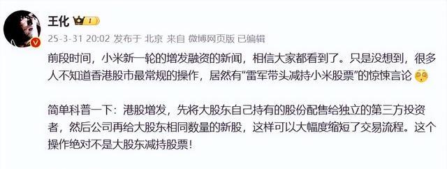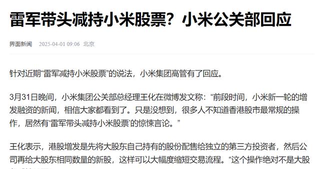 其表示小米这样的行为只不过是香港股市最常规的操作,完全不像传闻的那样是“雷军带头减持小米股票”!