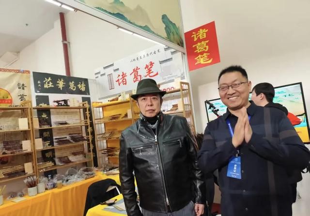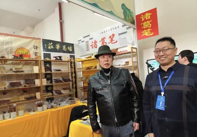 张铁林在现场看了诸葛笔书法,对此赞赏有加,还和主办人亲切交流,看起来很愉快!