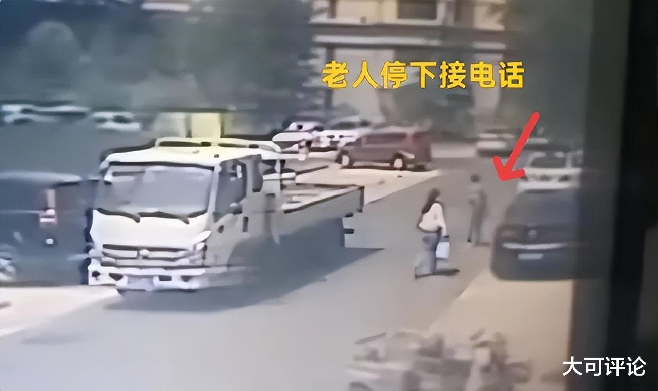 然后接电话的时候老人这才停在了原地,并把身体向着一边转了点,并不是网上所说的走着走着突然转身。