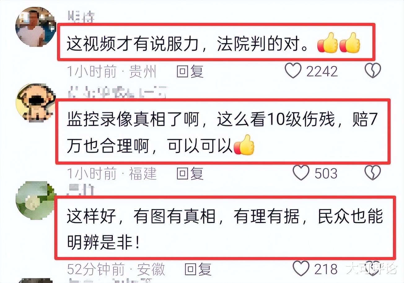 网友们看完监控得知了事件真相,网友们也表示了对法院调解的赞同,毕竟老人都被撞成十级伤残了,要求7万块钱的赔偿款合情合理。