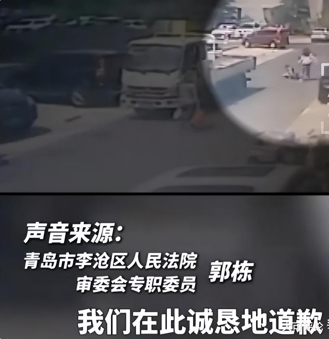 好在青岛法院及时公布事发时的监控澄清了真相,也坦然的认并道了歉。