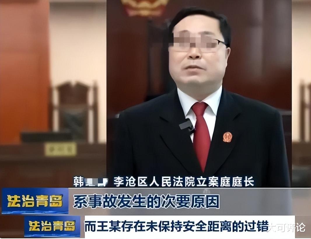 青岛李沧区法院的韩法官在镜头前严肃宣称:"行人未保持安全距离,撞伤老人需赔7万!"