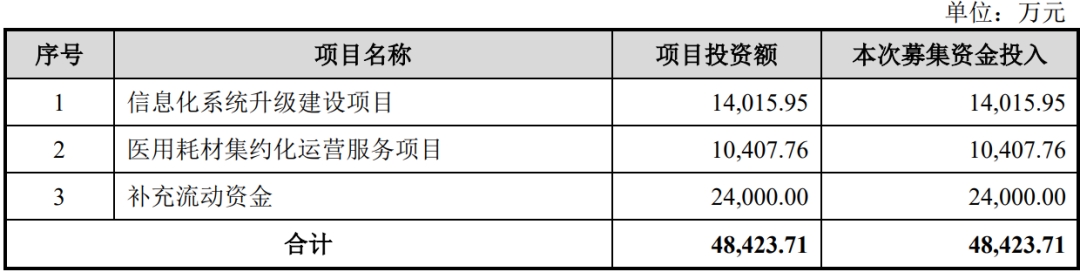 本次IPO,建发致新募集资金为4.46亿元,分别用于信息化系统升级建设项目、医用耗材集约化运营服务项目、补充流动资金。