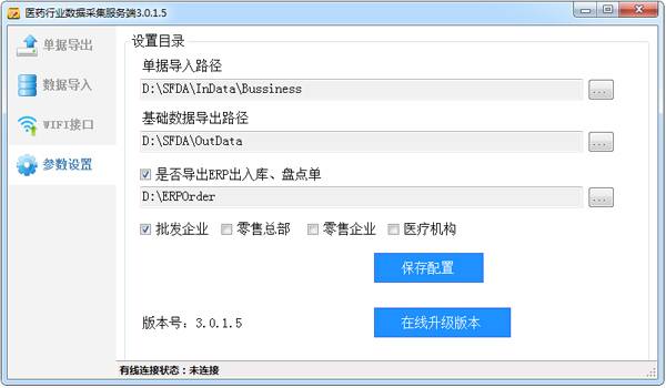 药监软件切换:若选择WiFi传输,软件登录时需选择“在线模式”;若选择数据线传输,软件登录时需选择“离线模式”。