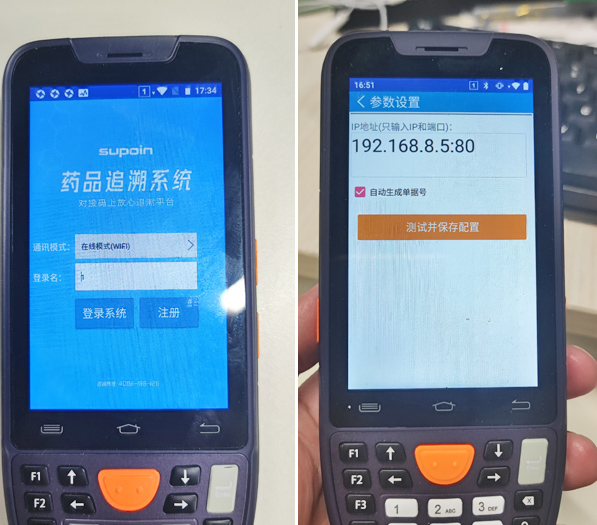 配置服务地址:在扫码枪APP(如“药监通”APP)中,设置正确的服务器地址和端口号,与电脑客户端IP要一致。