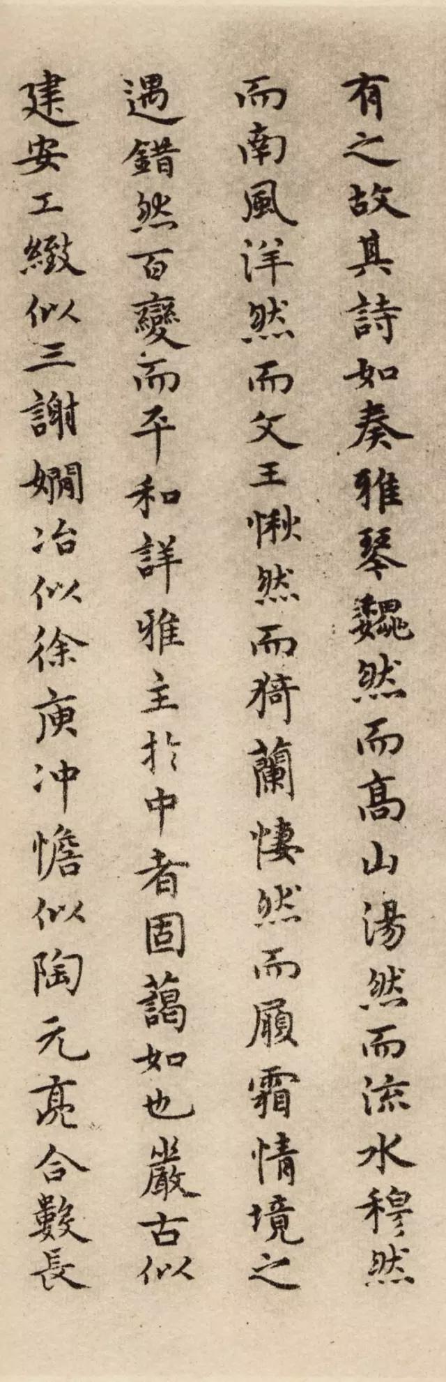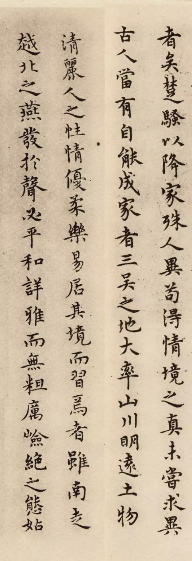 此序以小楷书成,劲利有致,用笔精劲细腻,游刃有余,笔到之处清雅飘逸。陶宗仪《书史会要》记载:“陈绎曾善于书法,真草篆隶俱通习之,各得其法。”但陈绎曾的墨迹传世很少,此为其代表之作。陈绎曾的小楷取法魏晋,作品结体稳健,体态端庄质朴、温润秀劲,法度谨严而意态生动。此作虽无雄浑的气势,却具晋唐书法的风致,也有自己的一定风貌,风格清秀俊雅。此作用笔精劲细腻,笔到之处清雅飘逸。他有意使点画的长短曲直各随字态,笔画繁者令其大,简者令其小,欹正疏密,方圆肥纤,一任自然。作品点画以圆笔为主,圆劲丰润,写得敦厚有力,恰似抛砖落石,使人不敢以虚妄之意拟之。同时,在沉着、含蓄的用笔之中,融合着一种“道和神明”的天性,点画顾盼生姿,笔断意连。在布局上,字距安排得比较疏松,拉开行间距离,使作品显得宽绰舒展,从而体现出见小为大、见密为疏的效果。