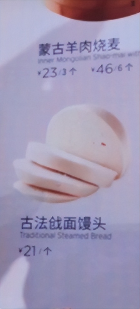 然而,西贝只是在馒头前面加了“古法呛面”四个字,就将超市1元一个的馒头翻了21倍,属于天价了。