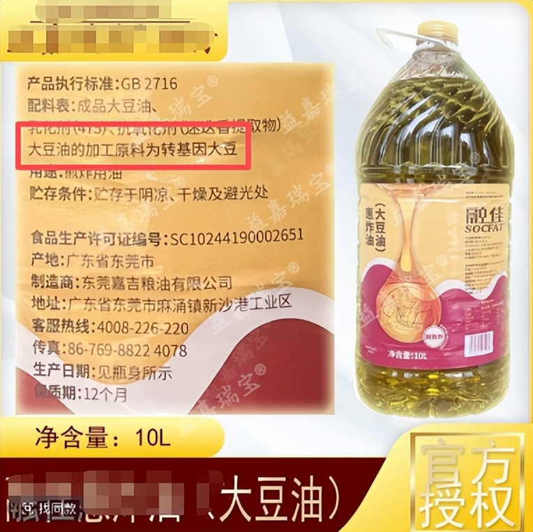 据了解,这两桶油全部是转基因大豆油,其中一桶是用来炸制食品的。