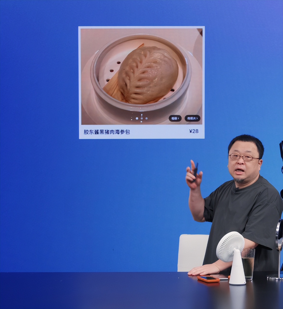 罗永浩还用一家米其林两星餐厅的“黑猪肉海参包”作对比,人家有肉有海参还有米其林认证也不过卖28元一个。