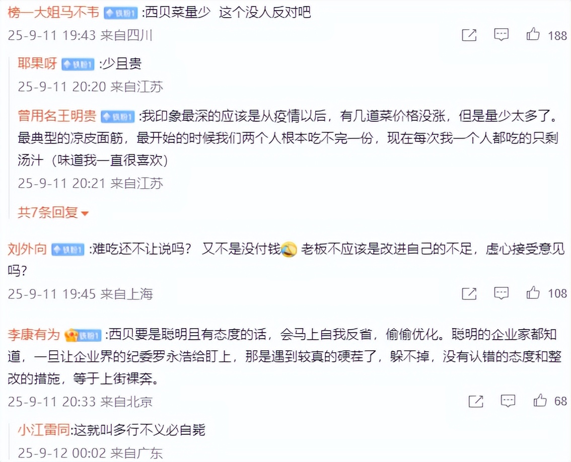 其中还有一条西贝厨师长的爆料令人印象深刻。
