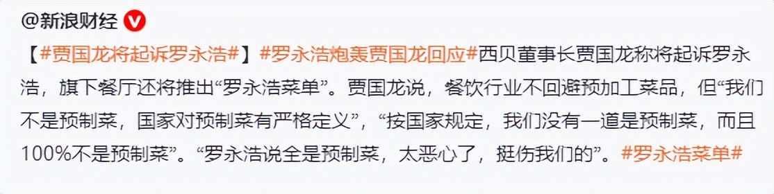 此前,贾国龙表示按照国家对主食的定义,西贝没有一道菜是预制菜。