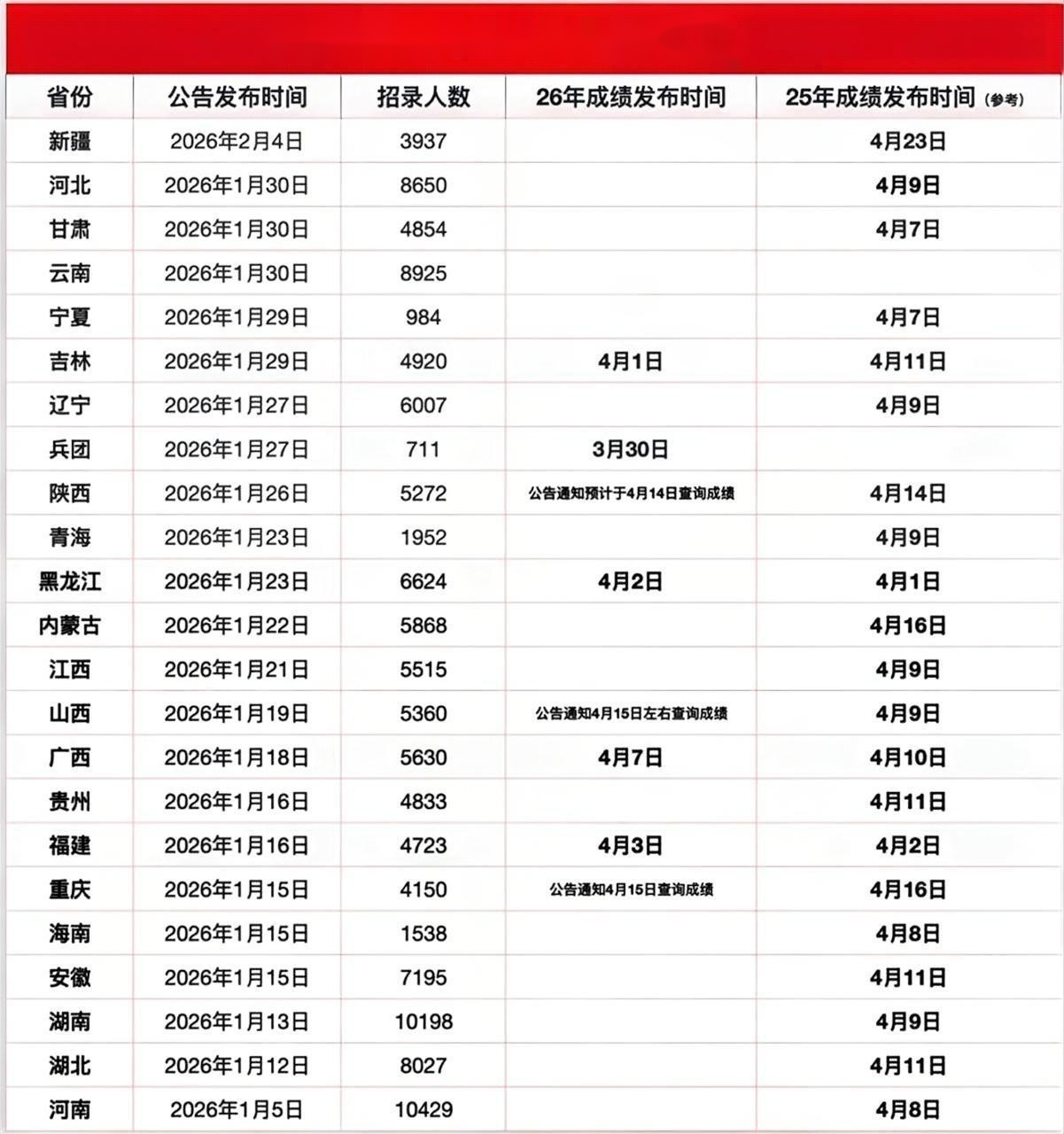 各位注意了!截至今天,2026年省考笔试成绩已经正式“开奖”5地——吉林、福建等地率先放榜。尤其值得关注的是,吉林省考成绩比去年提前10天发布,节奏明显在提速!
