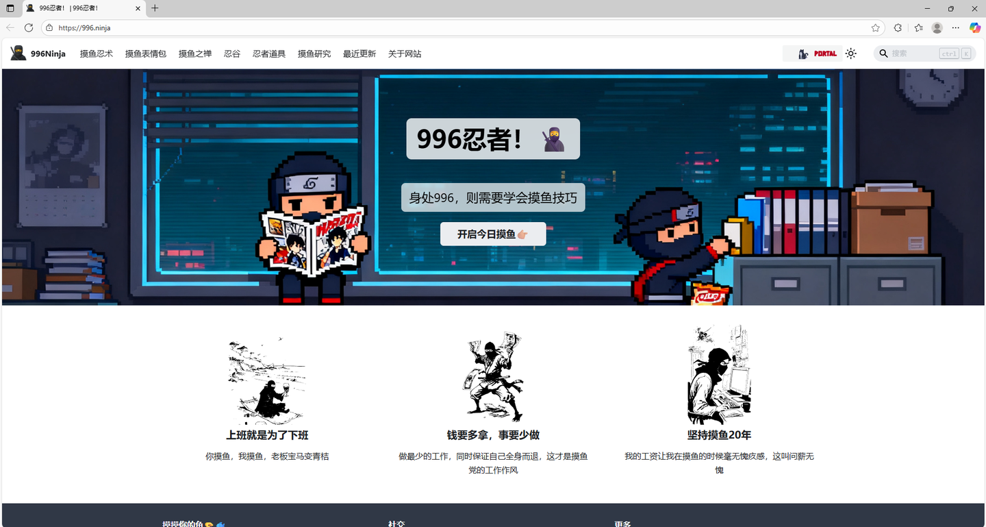 7、996nijia这是一个教你上班如何正确摸鱼的网站,里面收录了超级多的实用的摸鱼技巧,手把手教你如何上班安全的摸鱼,比如教你怎么用word看新闻,怎么正大光明看小说,怎么使用命令行去玩斗地主,摸鱼技巧千千万,总有一个适合你,并且里面还有很多实用的资源,比如小游戏,ai聊天、匿名聊天、背单词神器等等。