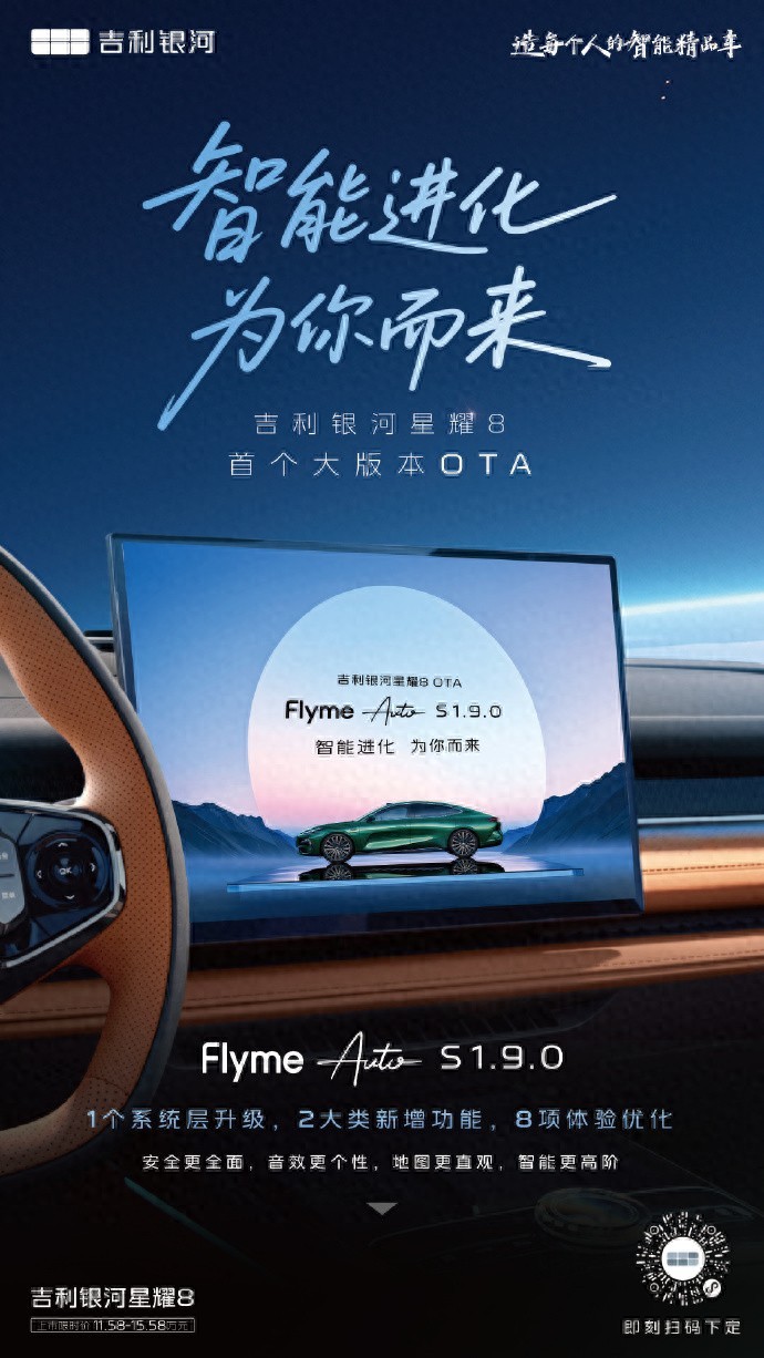 2025年10月23日,吉利银河星耀8正式推送首个大版本OTA,全面焕新银河Flyme Auto S1.9.0智能座舱系统,从系统底层到用户体验完成多维升级,以“常用常新”的硬核实力重新定义智能出行新标准。