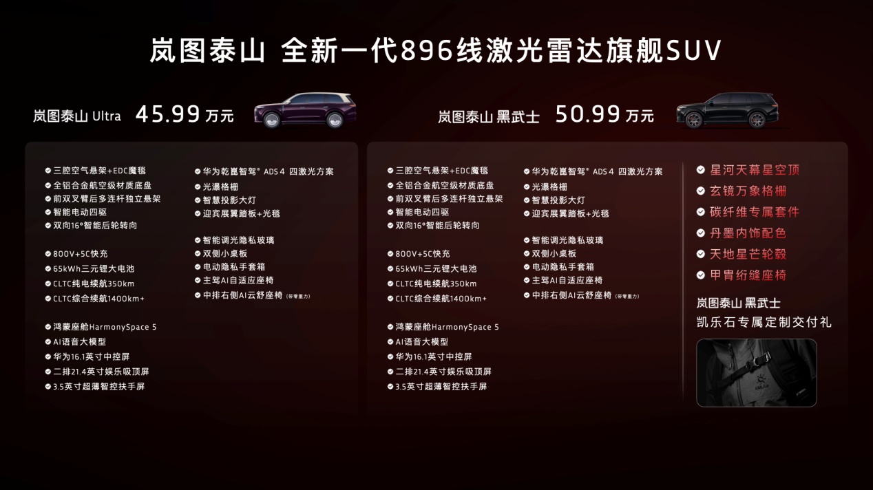 如果说泰山Ultra代表了中国智驾的硬核实力,那么售价50.99万元的泰山黑武士版,则展现了中国汽车的文化自信。
