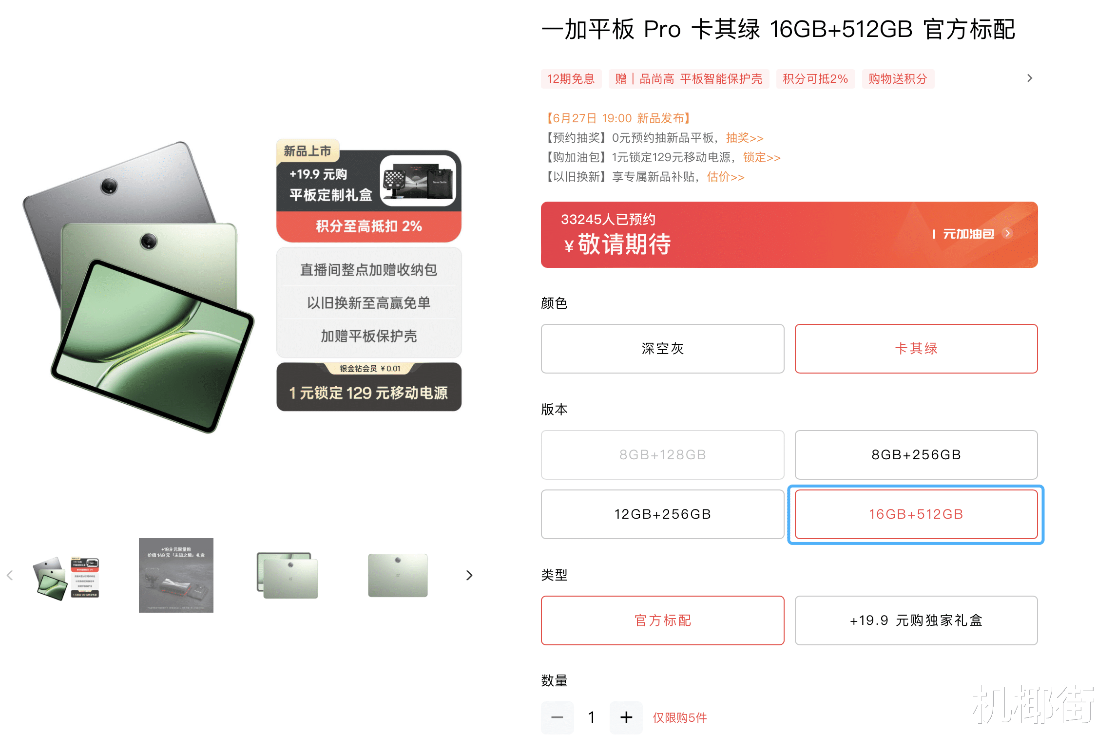 值得一提的是,目前一加平板 Pro已经在官方商城上架,其中细心的网友也会发现新品提供着最高16GB+512GB的内存、存储规格。一般对于平板产品而言,8GB以上的内存大小就已经比较适合于日常的使用体验了,一加提供了最高16GB的选择,这一定程度上也意味着平板有着较高规格的处理器配置,以超大内存来更好地释放出潜能。