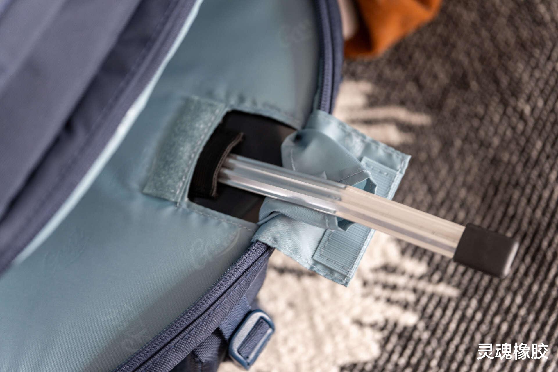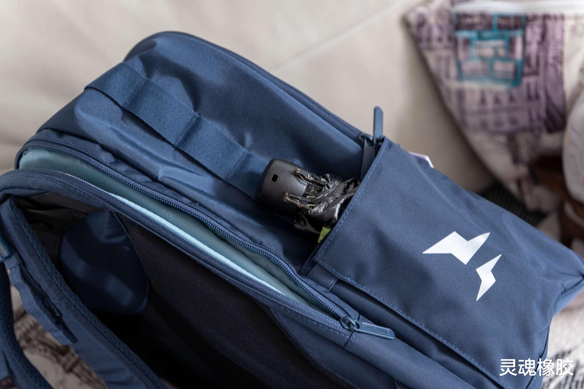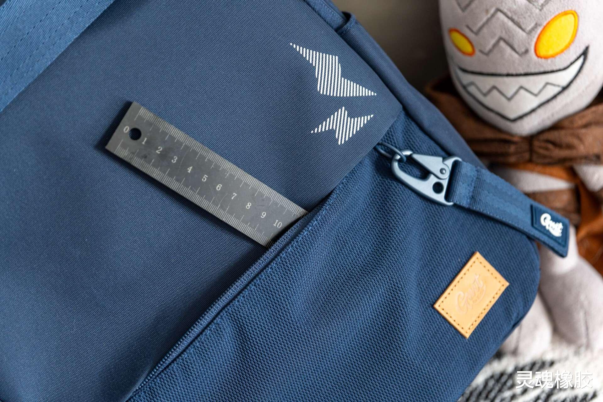 书包两侧均涉及了弹性口袋,收纳能力确实很强,口袋深度达18cm,雨伞甚至1L的运动水壶都能轻松收纳,松紧带防滑设计防止掉落。