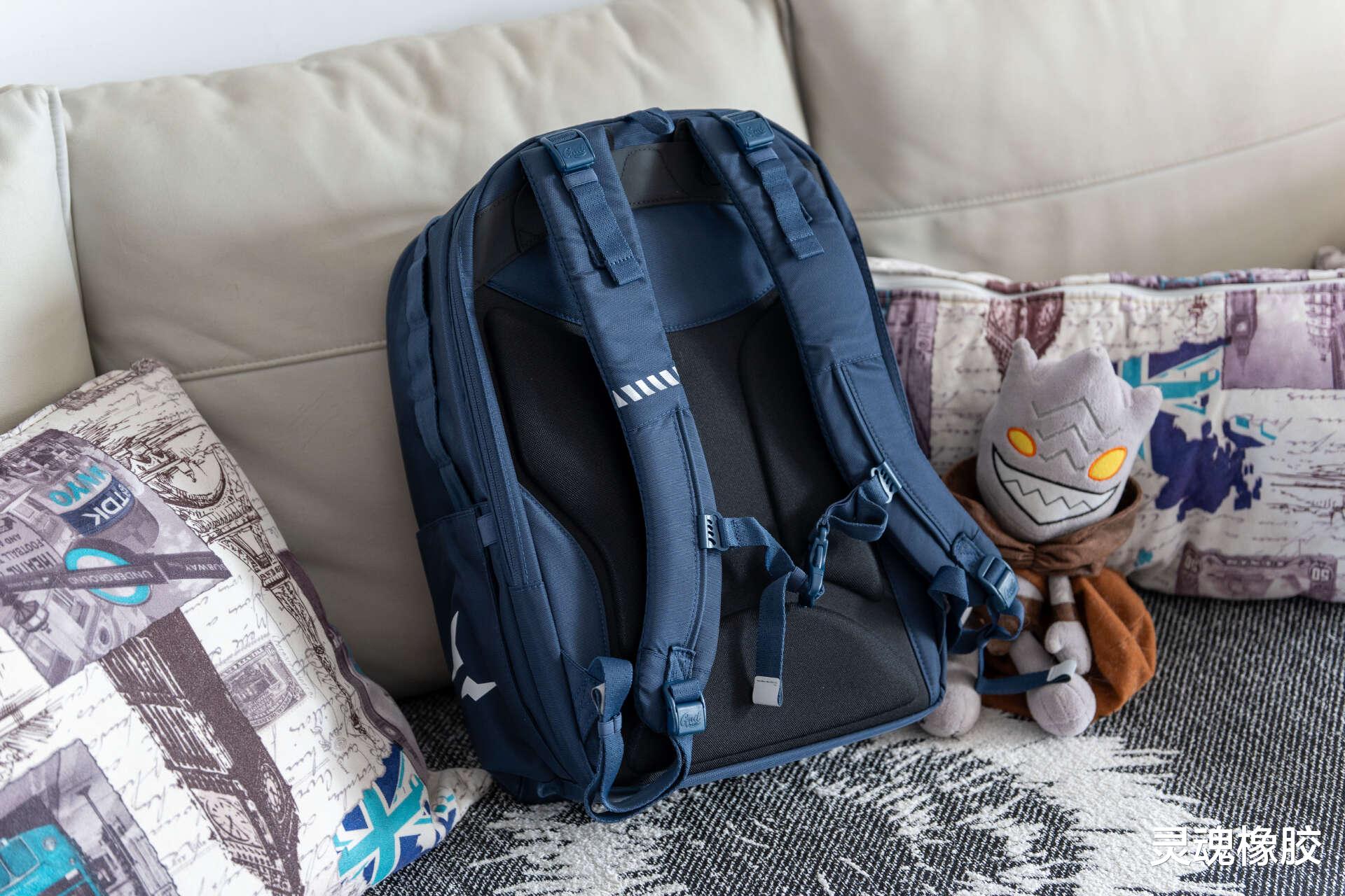 这款书包自重仅为1.095kg,比传统书包轻约30%,闺女说这款书包的负重感明显要比她以前的书包低,说好像没背那么些书的感觉。书包的背部采用三向凹槽结构,结合透气材质,形成空气流通通道。避免闷热出汗,背着更舒服。