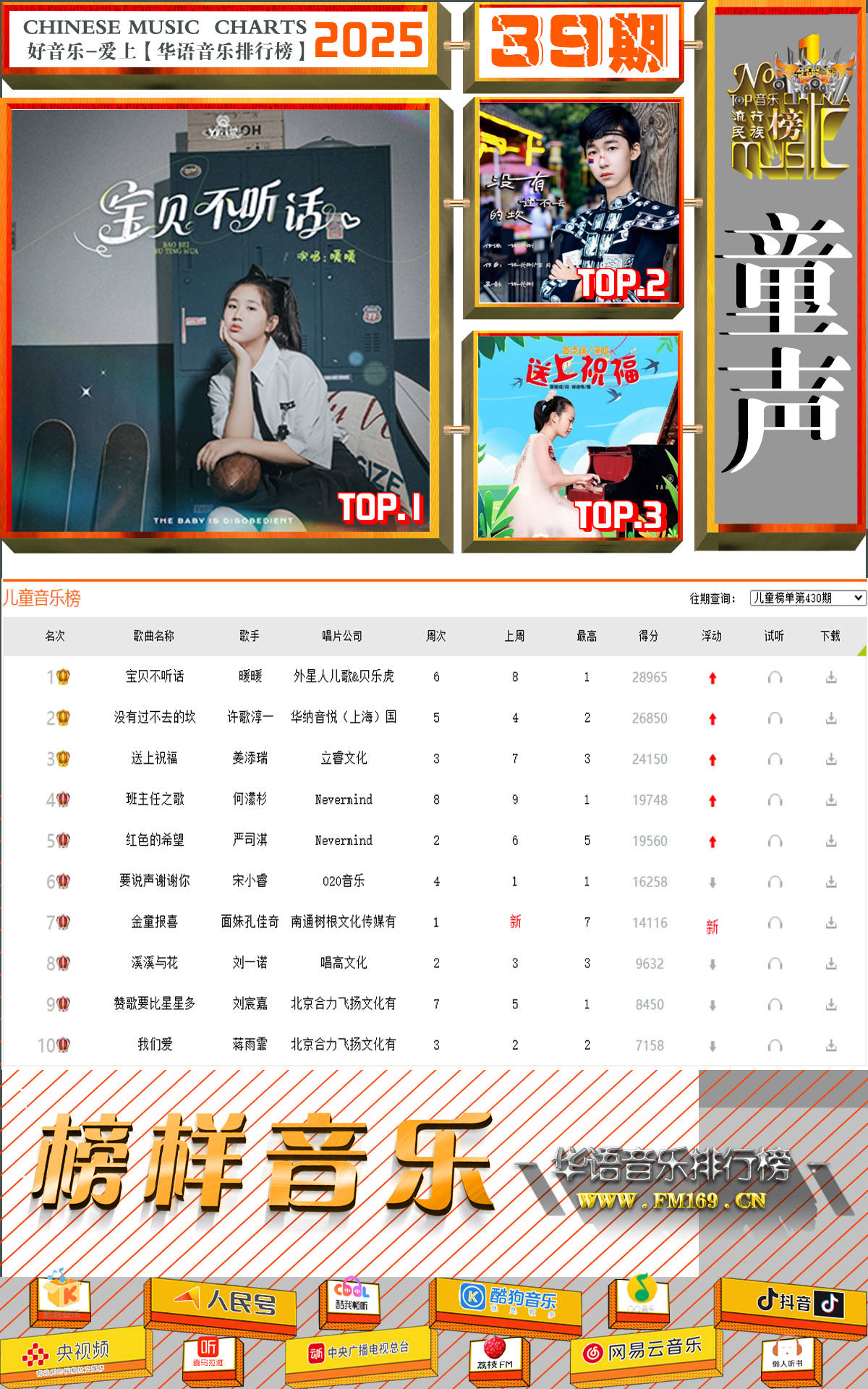 华语音乐排行榜【民歌总榜】第647期2025年第39期榜单排名