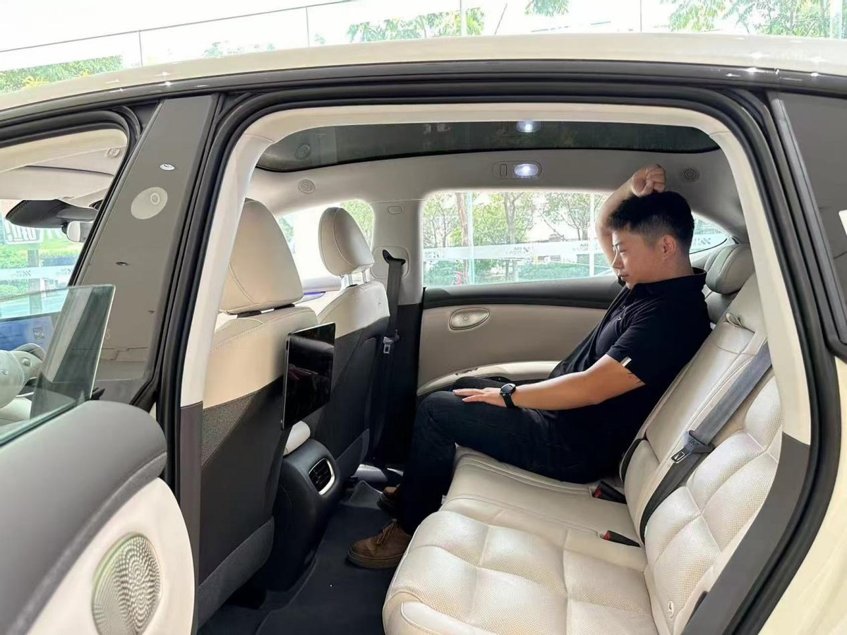 极氪7X带有副驾驶和后排右侧座椅腿托以及后排靠背角度调节和后排座椅放倒,不过不支持前排座椅往后放平。