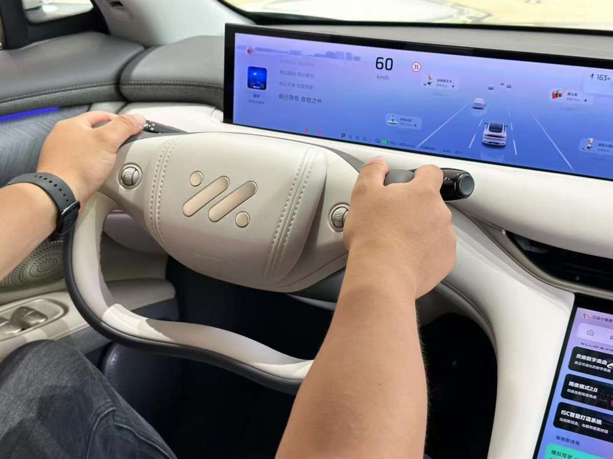 两款车的内饰设计和外观一样,也有很明显的区分。智己LS6坐在车内的科技感会更足,中控大屏加副驾驶屏幕以及中控下屏,再加半幅式方向盘,视觉冲击力这一块很强烈。极氪7X中控台做得比较平一些,一块悬浮式中控大屏加一块镶嵌式全液晶仪表。方向盘也偏运动,不过没有半幅式更有特点。用料方面,两款都是以软性材质为主,整体触感都能打一个高分。如果从细节上说,智己LS6内饰有胡桃木,浅金色金属饰条和比较柔软的艺术面料拼接,质感相对鲜明。极氪7X好的一点是给到了钢琴式中控按键,老司机操作起来会容易上手。