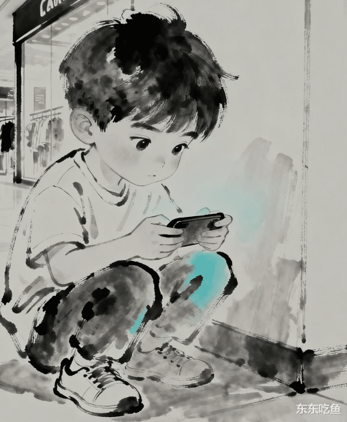 我曾在商场门口遇到一个蹲在角落打游戏的男孩。我问他:“这么喜欢玩啊?”