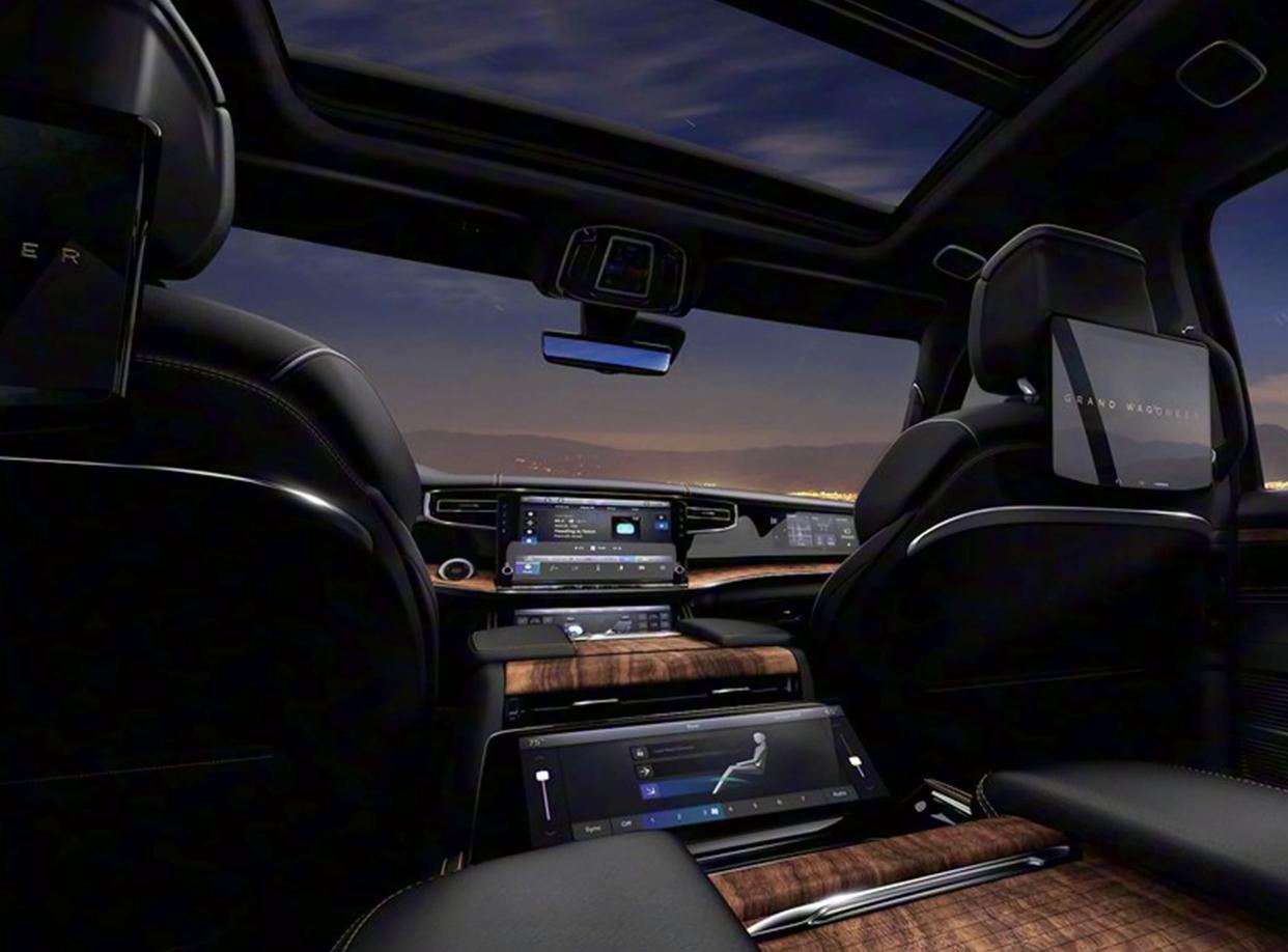 核心部分,新一代Jeep Grand Wagoneer的燃油版车型依旧搭载了我们熟悉的3.0T双涡轮增压直列六缸发动机,这台发动机的稳定性很好,动力参数也更加亮眼,最大功率420马力,峰值扭矩635牛·米。增程版车型则会采用3.6L V6发动机作为增程器,电机最大功率647马力,最大扭矩841牛·米,从0-100km/h的加速时间不到5秒,表底的最大速度为300km/h,这也使其成为有史以来加速最快的Grand Wagoneer。它还配备了92kWh电池,综合续航里程超过805公里。悬架采用了双叉臂式独立悬架、多连杆式独立悬架的组合,但车体结构应该为非承载式,还配备了全时四驱、可变悬架和空气悬架,攀爬模式下可达254mm,通过性更强。