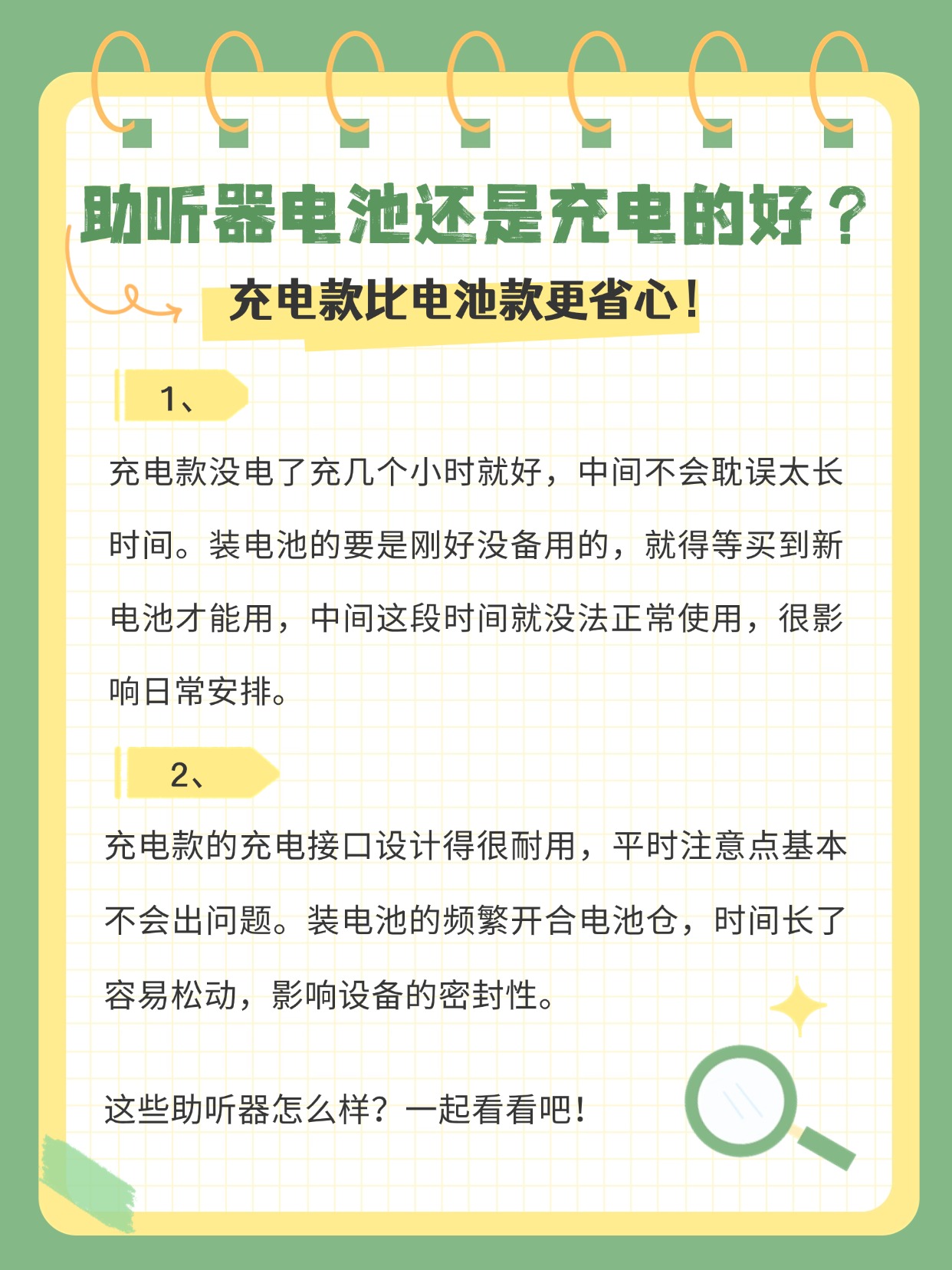 纠结电池款助听器好不好用、哪个质量靠谱?其实质量好不好,看核心配置和使用体验就知道!电池款胜在方便替换,但充电款的优点更实在:不用频繁换电池,防尘防潮性更好,长期用更环保,对老人也更友好。不用执着于牌子,适合自己的才耐用~ 具体质量测评细节,下图报告里有真实测试结果!