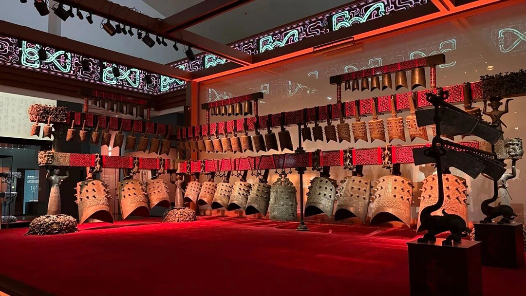 《钟鸣寰宇——曾国编钟与礼乐文明》以随州出土的曾国编钟为核心载体,系统展现了中国先秦礼乐文明的辉煌成就。作为迄今考古发现规模最大、体系最完备的诸侯国编钟群,曾国编钟从西周早期至战国晚期形制齐全,完整呈现了先秦编钟的发展谱系。展览通过“金石之声”“八音和鸣”“千载和鸣”三大单元,揭示了编钟作为礼乐制度核心的政治、伦理与艺术价值,彰显了“和而不同”“美美与共”的中华文明智慧。
