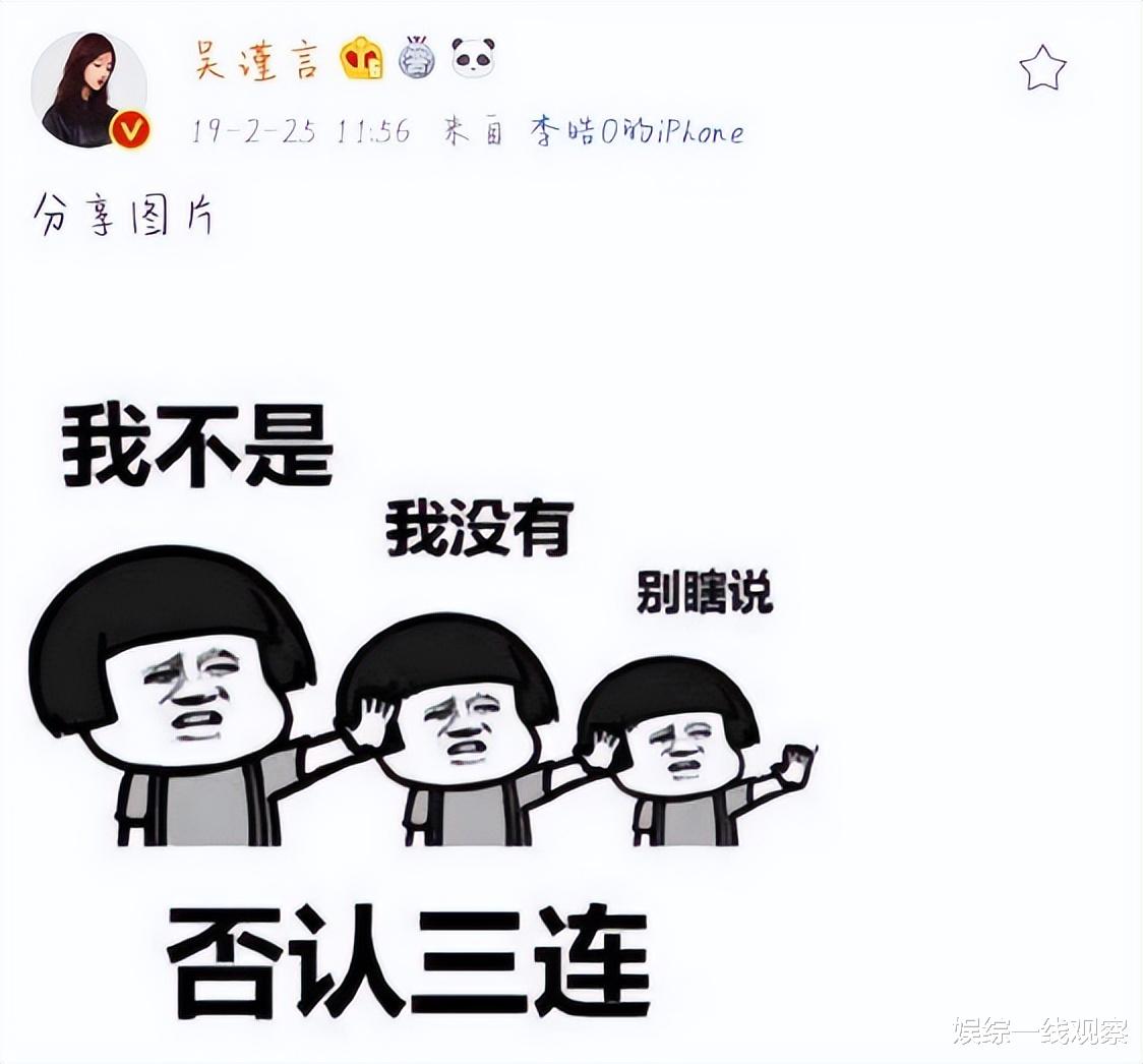 当时不少火眼金睛的网友已经猜出来二人关系并不一般,但吴谨言却发了一张拒绝三连的表情包公开回应。