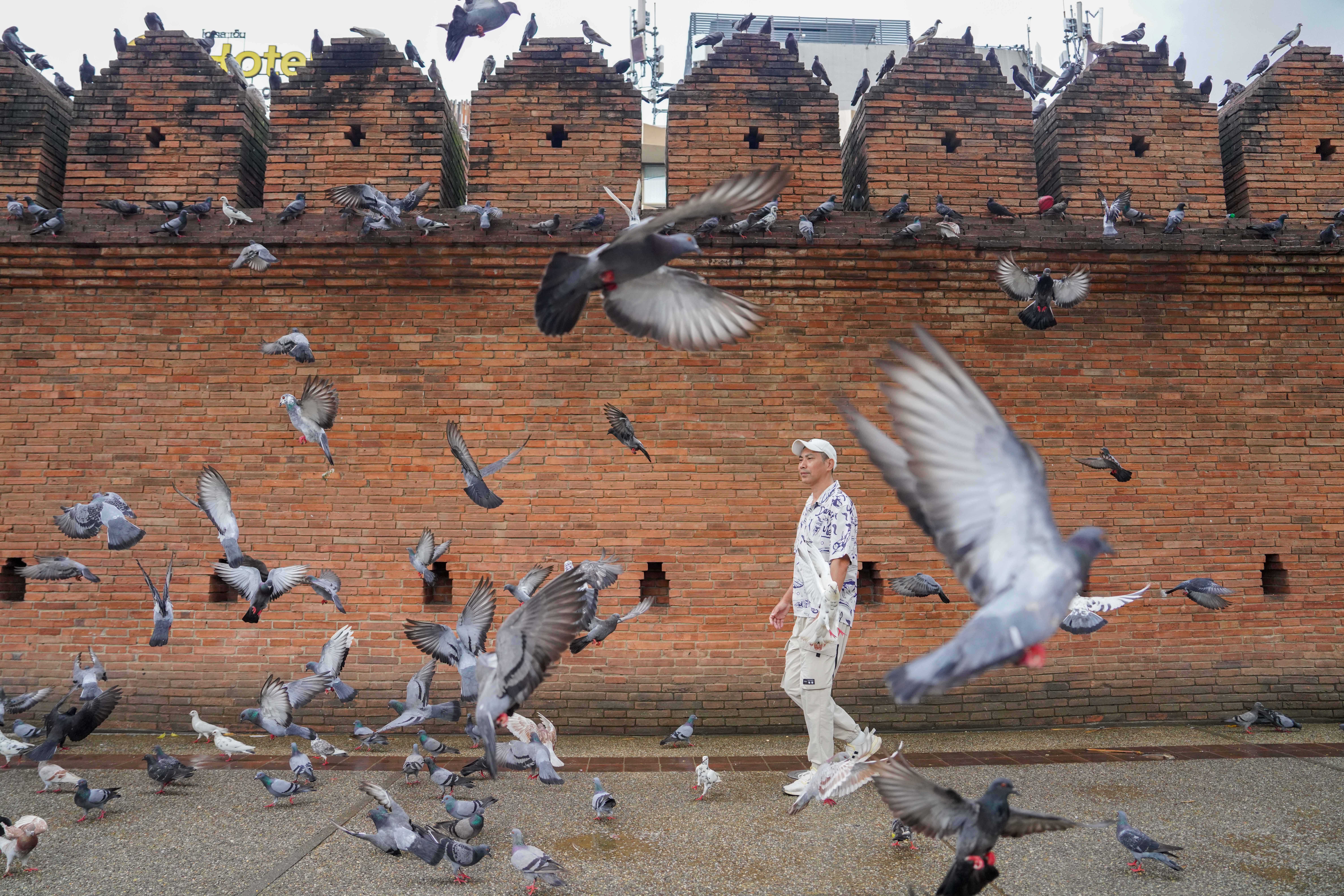 ️01 | 早上从塔佩门开始塔佩门永远是清迈最温柔的开场。把一袋玉米粒握在手心,鸽子会从远处飞来,落在你掌心里啄食——那一刻你会觉得自己被世界善待了。