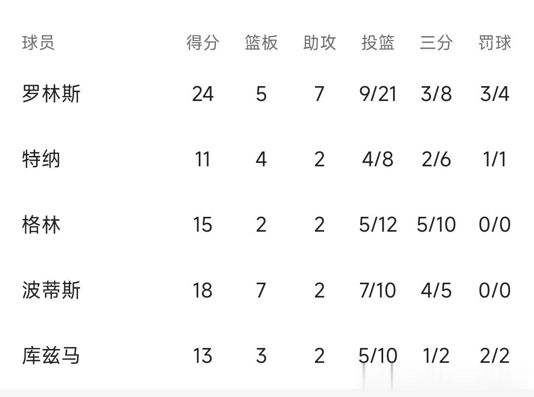 雄鹿这边,字母哥缺阵,实力大打折扣。首发阵容得分全部上双,库兹马13分,罗林斯24分,波蒂斯18分。
