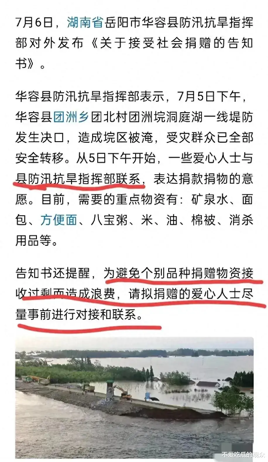 由之前的红十字会改为华容县本地向全国的兄弟省份发出了求援通告!这次求援活动绕过了红十字会,由华容县防汛抗旱指挥部直接承接。